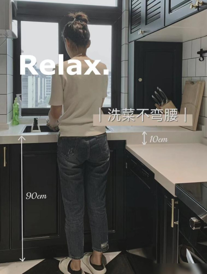高低台面必须上榜!闺蜜家之前台面统一高度,洗菜久了腰酸背痛。她这次换房直接按身高定制,168cm的人把水槽区搞到90cm,炒菜区降到80cm,现在切半小时菜都不带喊累的。计算方式挺简单,洗菜台按身高除二再加5-8cm,炒菜区再往下压8-10厘米,谁用谁知道。